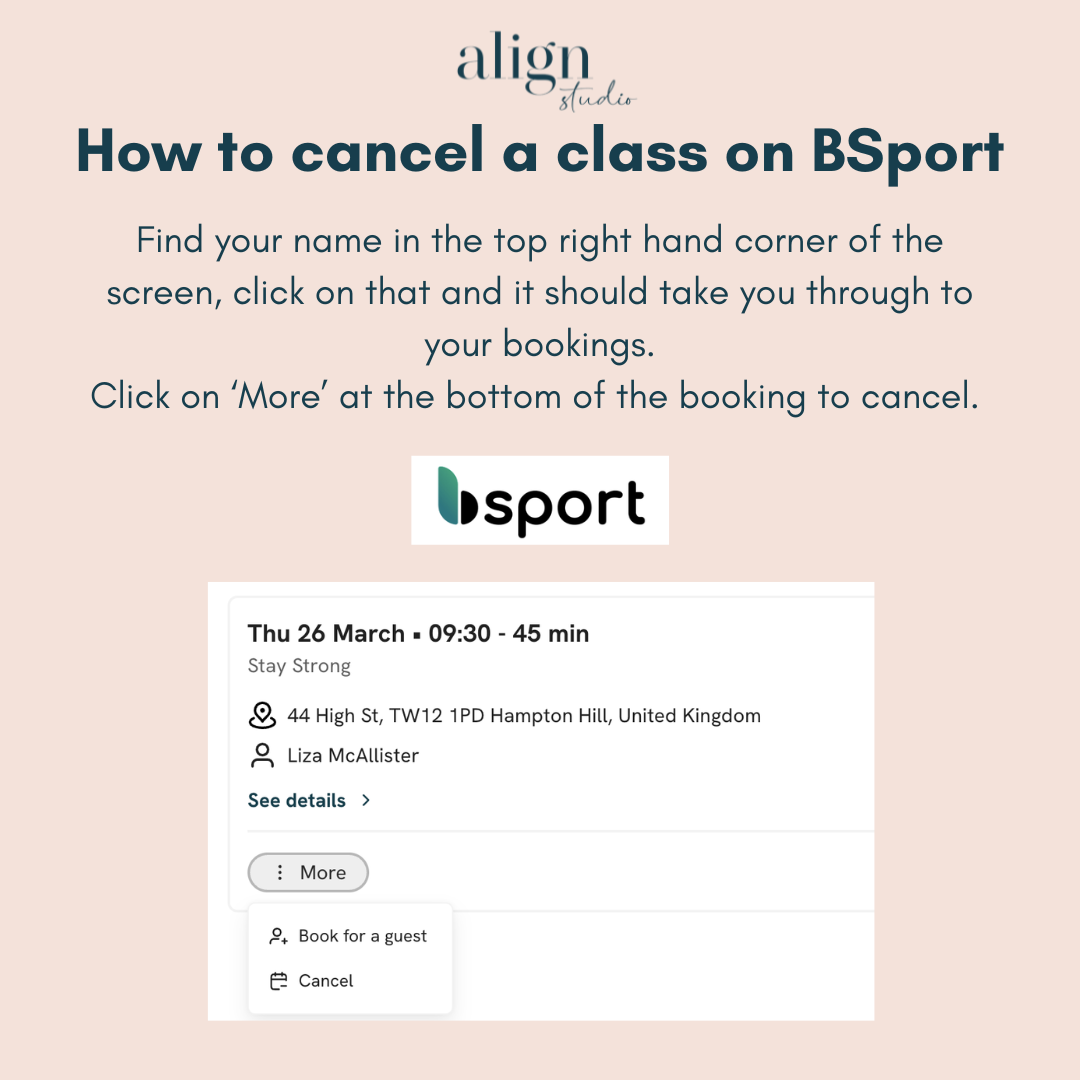 If a class is cancelled then the class will be returned to your profile on the bsport app to be used again. Refunds are not automatically issued, please contact lyndsey@alignstudio.co.uk if you require help with a refund.
